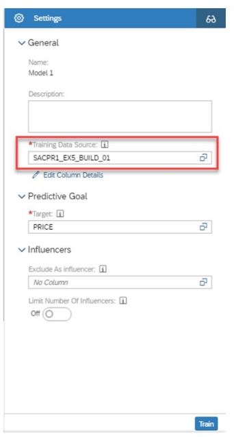 - Save the model – it will appear in your predictive scenario with the status Not Trained.